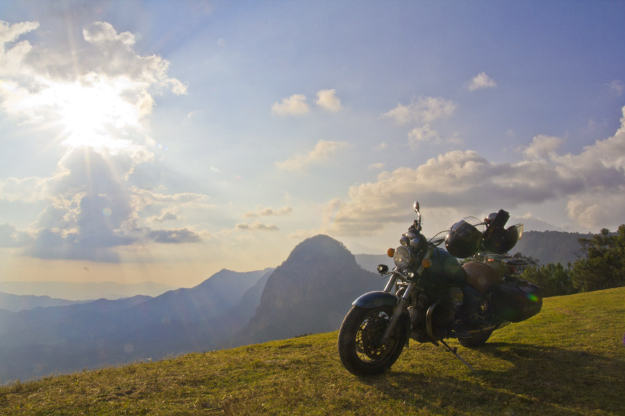 Motoguzzi sulla cima delle montagne sopra valle bravo